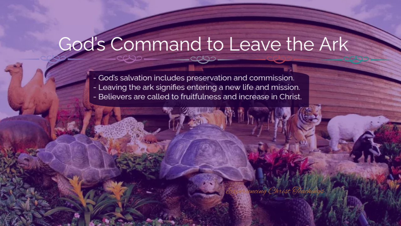 Genesis 8:15–19; John 10:3–4; Matthew 28:19; Philippians 1:6 God spoke to Noah, commanding him, his family, and the